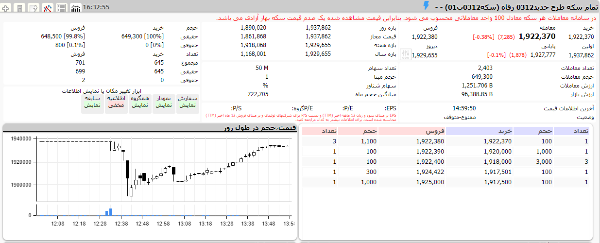 به دنبال روند نزولی قیمت دلار و همچنین پس از آنکه بورس کالا چهارشنبه گذشته به درخواست بانک مرکزی در اطلاعیهای خبر داد که دارندگان بیش از ۱۰۰ گواهی سپرده سکه از روز شنبه ممنوعالمعامله خواهند شد، امروز سکه رفاه شاهد فشار فروش بود. قیمت سکه رفاه ۰.۴ درصد کاهش داشت و به ۱۹ میلیون و ۲۲۰ هزار تومان رسید. در کنار آن، حجم معاملات سکه بورسی اوج گرفت و معادل حدود ۶۵۰۰ قطعه سکه امروز معامله شد که نسبت به روزهای اخیر تقریبا ۶ برابر شد. این در حالی است که سکه بورسی پیش از این خود حدود ۱۷ درصد ارزانتر از قیمت سکه در بازار آزاد بود. محدود شدن دامنه نوسان سکه تحویل یک روزه به ۲ درصد و همچنین اعمال نوعی محدودیت حجم مبنا بر آن موجب شده بود تا سکه بورسی در مسیر صعودی از سکه آزاد جا بماند.