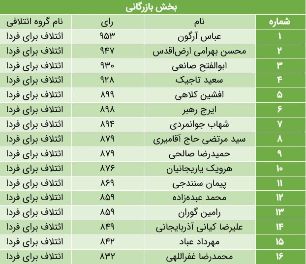 فردای اقتصاد: نتایج دهمین دوره انتخابات اتاق بازرگانی تهران اعلام شد. این انتخابات از ساعت ۸ صبح امروز ۲۰ اسفندماه در سالن ۳۸A نمایشگاه بینالمللی ایران انجام شد و با پایان مهلت قانونی آن در ساعت ۱۸، با دو بار تمدید در ساعت ۲۰ به پایان رسید.