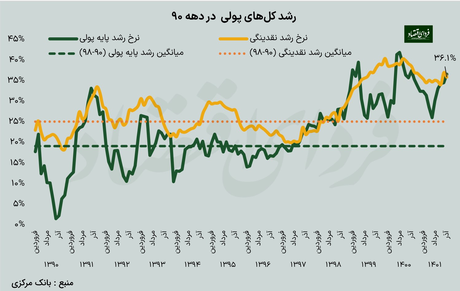 دکتر مجید علیفر، مدیرعامل شرکت سبحان نیز اضافه کرده است که "رشد نقدینگی و پایه پولی تقریبا به اندازه هم خواهد بود و تکامل سیستم پولی به محدوده ای رسیده که شبکه بانکی توان خلق نقدینگی بیشتری ندارد.بودجه دولت در حال حاضر براساس دلارهای کمتر از ۳۵ هزار تومان کالیبره شده است و در حال حاضر با محدوده های نرخ ارز بالاتر از ۵۰ هزار تومان کسری بودجه نیز بیشتر شده و منجر به رشد پایه پولی و مجدد رشد نرخ ارز و ... چرخه تورم خودتقویت شونده را تحریک میکند. این چرخه در سال ۱۴۰۲ یک مرتبه رخ میدهد و شاید با دلارهای بالاتر از ۷۰ هزار تومان در تابستان مجدد هزینه های جاری دولت با رشد مجدد روبرو شود.به نظر میرسد علی رغم نقد بودن تامین کسری بودجه از طریق پول پرقدرت، تصمیم ساز اقتصادی سوگیری خود را به سمت تامین از طریق مالیات از درآمد و همچنین فروش اموال مازاد نیز در نظر گرفته است. شاید اگر این سوگیری دولت نبود در سال ۱۴۰۲ رشد پول پرقدرت از محدوده ۵۰ درصد فراتر میرفت اما با لحاظ این منابع نیز رشد پول پرقدرت حدود ۴۵ درصد خواهد بود که این خود شرایط بسیار دشواری را رقم میزند به ویژه اینکه بعد از فروش اموال نقدپذیر مازاد برای سال بعد با هزینه های متورم شده جاری دولت چرخه تورم خودتقویت شونده کار خواهد کرد."