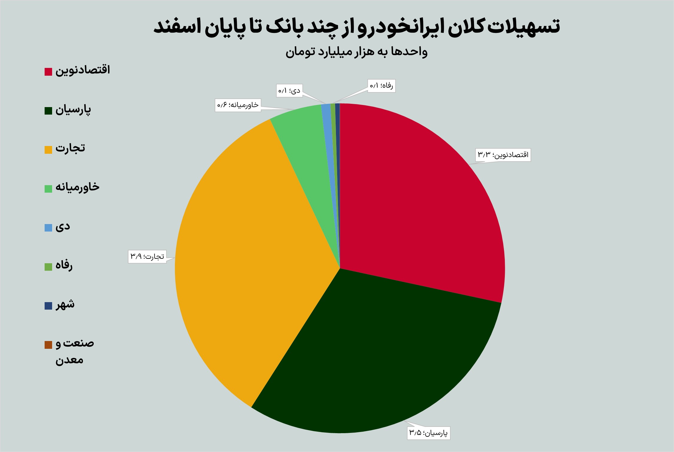 نمودار بالا نشان میدهد که این تولیدکنندگان چه حجمی از تسهیلات را دریافت کردهاند. سمت چپ نمودار مانده تسهیلات را طبق صورت مالی نهماهه دو خودروساز داخلی بزرگ ترسیم کرده و در سمت راست، تفکیک تسهیلات کلان دریافتی آنها از چند بانک نشان داده شده که اطلاعات تسهیلات کلانشان تا پایان اسفند به تازگی از سوی بانک مرکزی منتشر شده است. جزئیات سمت راست در تصاویر زیر قابل مشاهده است.