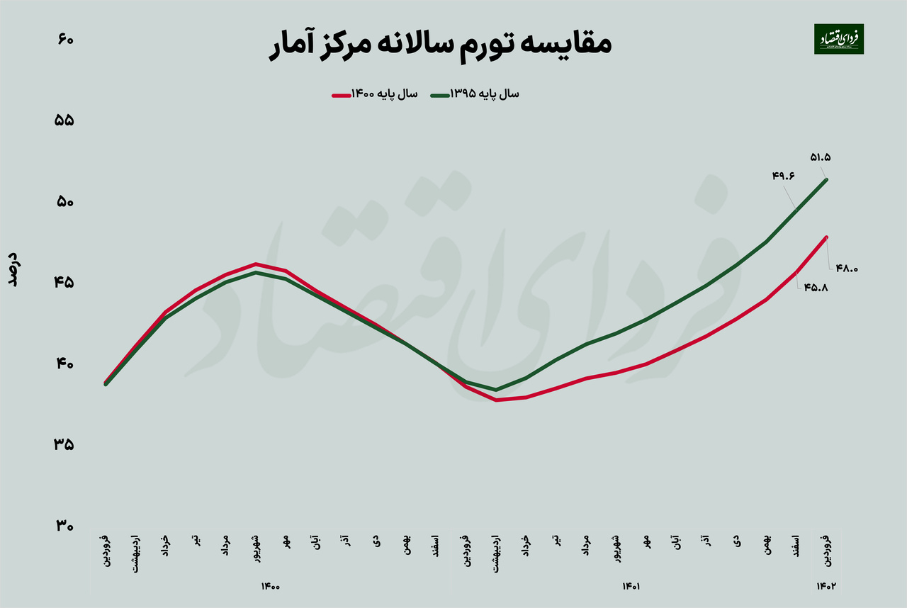 تغییر سال پایه عمدتا به دلیل در نظر گرفتن تغییرات احتمالی در سبد خانوار ناشی از شوکهای اقتصادی صورت میگیرد تا این شاخص با دادههای واقعی، همخوانی بیشتری داشته باشد. بر همین اساس مرکز آمار اقدام به تغییر سال پایه شاخص قیمت مصرف کننده از سال ۱۳۹۵ به سال ۱۴۰۰ کرد. آمارهای مربوط به تورم سالانه (رشد میانگین شاخص تورم ۱۲ ماهه اخیر نسبت به ۱۲ ماه قبل آن) نشان میدهد که تورم با سال پایه جدید نسبت به تورم قبلی در سطح پایینتری قرار دارد به طوری که مقدار آن برای فروردین ۱۴۰۲، ۳.۵ واحد درصد کمتر شده است (تورم سالانه اسفند و فروردین برای سال پایه ۱۳۹۵، بر اساس تورم ماهانه اخیر محاسبه شده است).