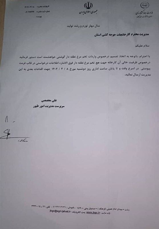 تسنیم: علی محصصی سرپرست مدیریت امور طیور جهاد کشاورزی استان گیلان با ارسال نامهای به مدیران کارخانجات جوجه کشی استان از امکان واردات این محصول برای پرکردن ظرفیت خالی کارخانجات خود خبر داد.