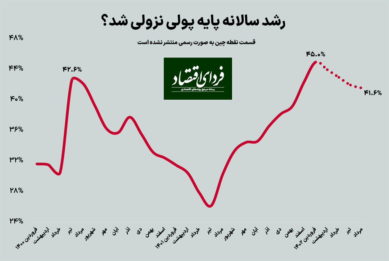 همچنین رشد سالانه نقدینگی به ۳۱.۸ درصد رسیده که ۷.۵ واحد درصد کاهش را نسبت به سال گذشته نشان میدهد. با این حال رشد ماهانه نقدینگی ۲.۳ درصد افزایش یافته که بیشترین میزان آن از ابتدای سال است. در پنج ماهه اول سال جاری، نقدینگی معادل ۸.۱ درصد رشد یافته است که این رقم حدود یک واحد درصد کمتر از رشد نقدینگی هدفگذاری شده برای پنج ماهه اول سال ۱۴۰۲ جهت رسیدن به رشد نقدینگی سالانه ۲۵ درصد است.