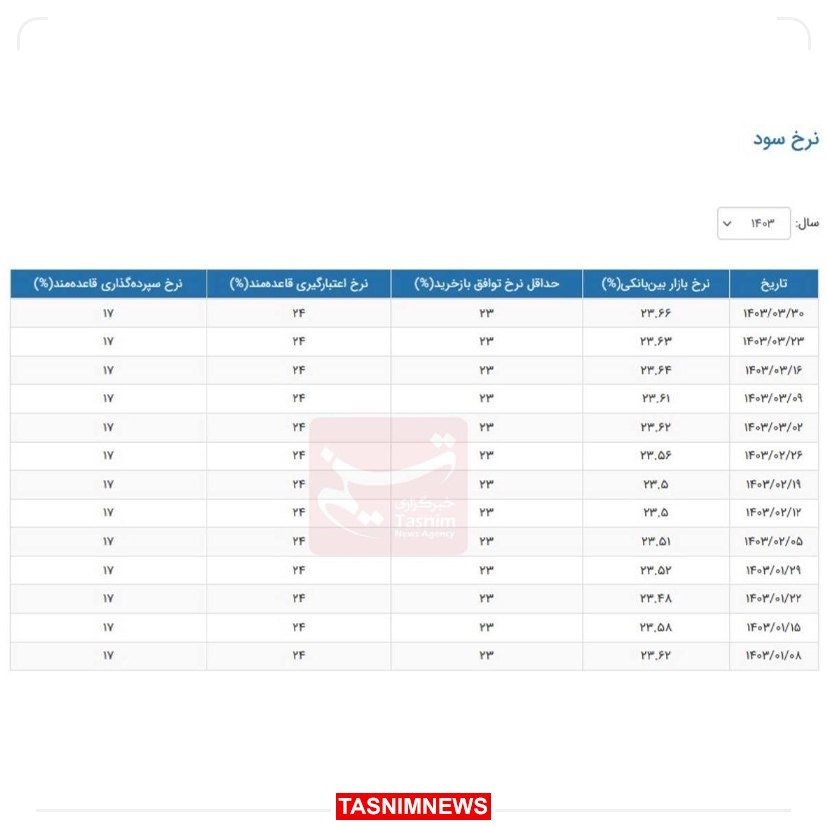تسنیم: تازهترین گزارش از تغییرات نرخ بهره بین بانکی درحالی از سوی بانک مرکزی منتشر شده که نشان میدهد نرخ سود بین بانکی به بالاترین سطح در سال جاری رسیده و رکورد ۲۳.۶۶ درصد را در هفته پایانی خردادماه ثبت کرده است.