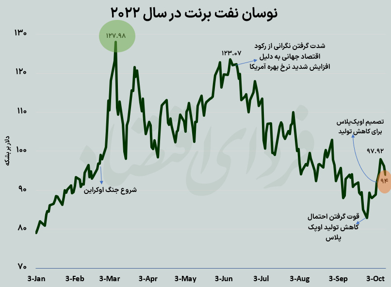 رکود اقتصاد جهانی به معنای تقاضای کمتر برای نفت است و قیمت این کالا را ظرف ۴ ماه گذشته در مسیر کاهشی قرار داده است. از سوی دیگر سیاستهای انقباضی فدرال رزرو به تقویت دلار منجر شده است. شاخص دلار در حال حاضر حدود ۱۱۳ دلار نزدیک به سقف تاریخی خود قرار دارد. افزایش ارزش دلار به معنای گران شدن نفت برای خریدارانی است که ارز مرجع آنها غیر دلار آمریکا است و تقاضا برای نفت را فشرده میکند.