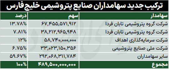 ترکیب جدید سهامداران شرکت صنایع پتروشیمی خلیجفارس